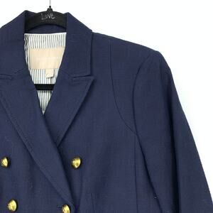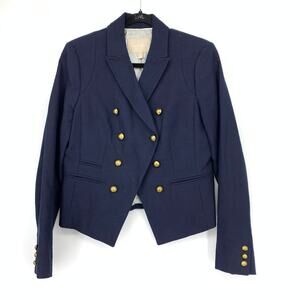 Banana Republic Double Breasted Blazer Jacket Womens Sz 8 Navy Blue Gold Buttons