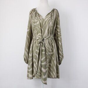 Banana Republic Dress $270 Sz S Mossy Green Tan Belt Unlined 100% Silk Dress
