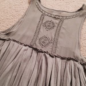 Banana Republic dress with delicate metallic embroidery detail. Only worn a couple times. Small hole in back on lower half. Beautiful belted, with sandals, with tights and heels or layered under a sweater!