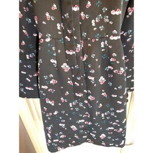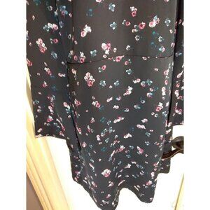 This stunning Banana Republic floral dress in blue is a must-have for any fashion-forward woman. The dress features long bell sleeves, a tie closure, and an open back design that adds elegance and style. It is a size 6 with a bust of 36 inches and a knee-length hemline.