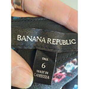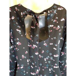 Banana Republic Dress Blue Floral Tie Open Back Bell Sleeves Sz 6 Bust 36 Length
