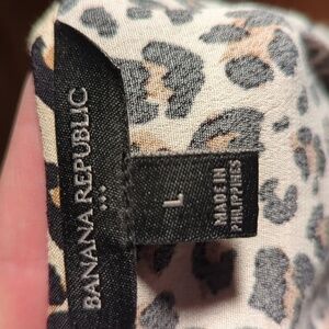Banana Republic Dress Cheetah Leopard Print brown Rayon 3/4 Balloon Sleeve sz L