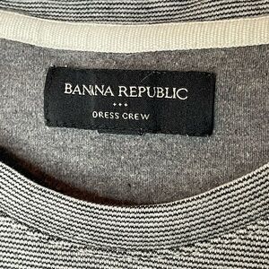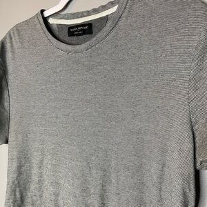Banana Republic Dress Crew Men’s Small Cotton Short Sleeve Shirt Top White/Navy lines thin stripes