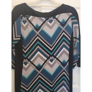 This stylish Banana Republic dress is a must-have for any fashion-conscious woman. With its eye-catching geometric pattern, 3/4 sleeves, and knee-length pencil design, it's perfect for any occasion. The dress is a size medium and is made from high-quality materials, ensuring it will last for years to come. The multicolor design is perfect for adding a pop of color to any outfit, and it's sure to turn heads wherever you go. Don't miss out on this fantastic dress - order now!