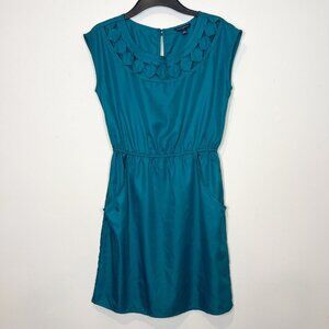 Banana Republic Dress Green Cutout Neckline Pockets Elastic Waist Mini Size 2