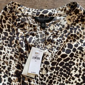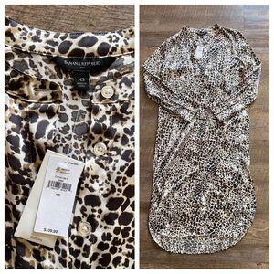 A flowy relaxed fit hi-lo button down dress from Banana Republic in gorgeous allover leopard/animal print. NEW! Size XS, the fit is flowy and oversized. Full button front placket so you can customize your fit. Long sleeves with button closure cuffs. Please see photo section for approximate flat measurements + my model stats for fit reference. Material: 97% polyester, 3% spandex.