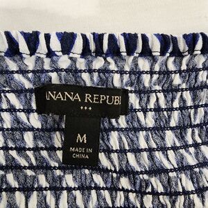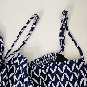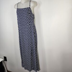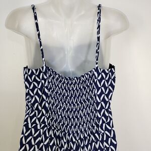 Banana Republic Dress Medium Slit Midi Navy Spaghetti Straps Smocking Geometric