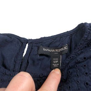 Banana Republic Dress Navy Eyelet Lace Short Sleeve Midi Tiered Womens Size 12 P