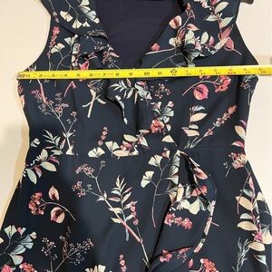 Banana Republic Dress Preppy Navy Floral Faux Wrap High low Lined side zip 8