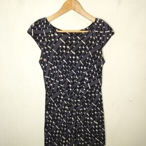 Banana Republic Dress Silk Wool Knit Cap Sleeve Geometric