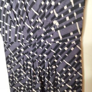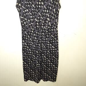 Banana Republic silk wool black, gray, beige print cap sleeve dress. Size 2. Zips up the back. (22840)