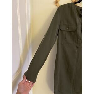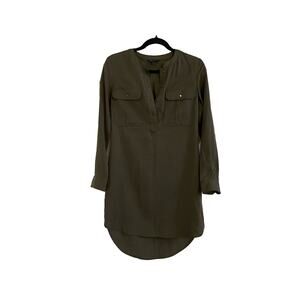 Banana Republic Dress Women's 0 Mini Army Green Long Sleeves Hi Lo Henley Neck