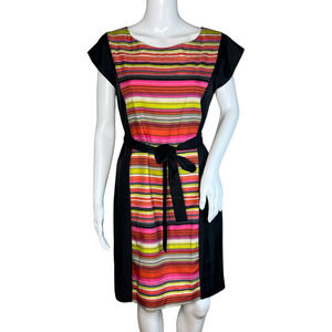 Banana Republic Dress Womens 6 Black Multi Striped Panel Dress Sheath Colorful