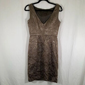 Banana Republic Dress Women's 6 Brown Metallic Sleeveless Textured Knee Length
