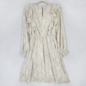 Banana Republic Dress Womens Small Cream Snakeskin Print Ruffle Lightweight
