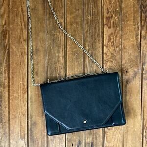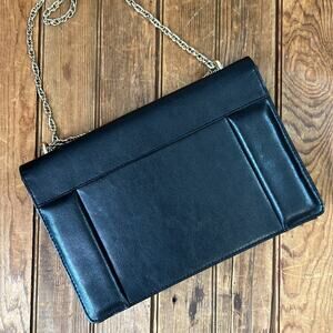 Banana Republic Elegant Black Leather envelope, Shoulder Bag gold chain strap