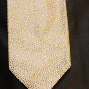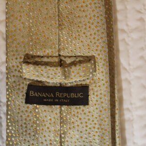 Elegant Banana Republic silk tie made in Italy. Substantial silk Gold background with light yellow orange mini dots. Black monogrammed lining.Excellent condition.