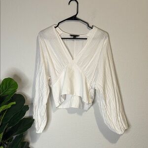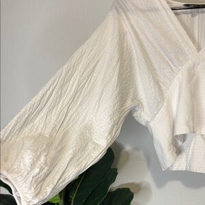 Banana Republic Elegant White V-Neck Blouse with billowy sleeves Size 6