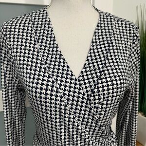 Banana Republic Elephant Print Wrap Dress SZ L Navy Blue White Career Wear Is New With Tags.