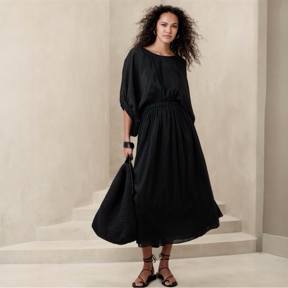 Banana Republic Eliana Cotton Silk Black Full Sleeve Dress Size Small