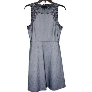 Banana Republic Embroidered A Line Black White Herringbone Dress Office Siren 6