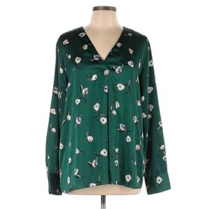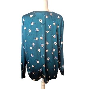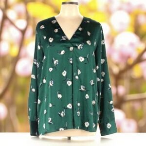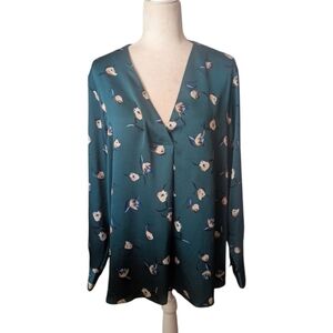 Banana Republic Emerald Green Floral Print Relaxed Flowy V Neck Tunic Sz XL