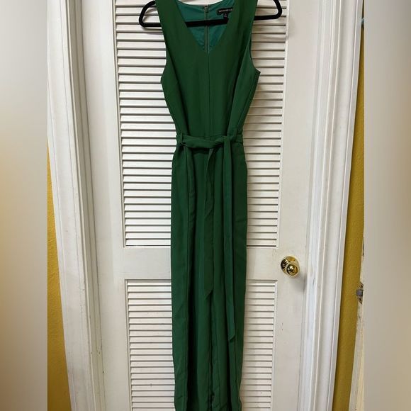 Chic wide leg jumpsuit with a sleeveless cut. Features a V-neck and a matching belt for a refined look.