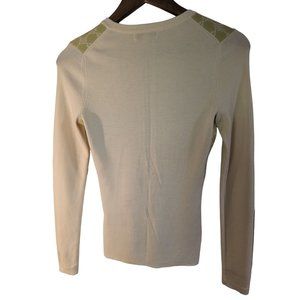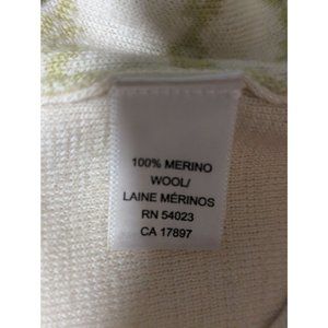 Stylish Banana Republic sweater in an ivory shade with line green circles, crafted from extra fine Italian merino wool. This thin knit, women's size S, is perfect for a fashionable layering piece.