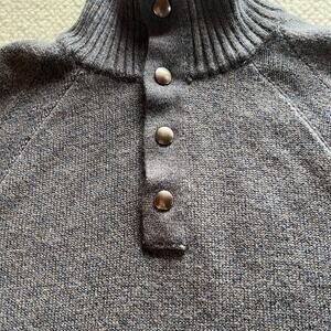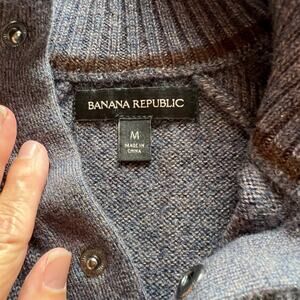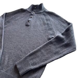 Banana Republic Extra Fine Merino Wool Blend Sweater Mens M 1/4 Snap Gray Blue