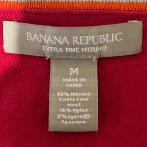 Banana Republic brand Extra Fine Merino Wool Sweater in the color Radiant Raspberry. Made of a super soft and cozy Merino Wool blend. Tag size Medium. Underarm to underarm measurement is 19 inches. Total length from shoulder to hem is 26 inches. Excellent preowned condition!