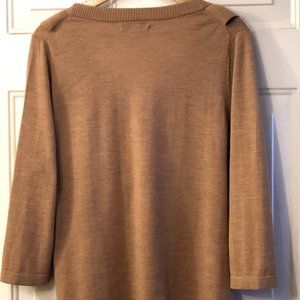 Banana Republic Extra Merino Wool Sz L Women's Sweater Faux Wrap Ruffle Camel