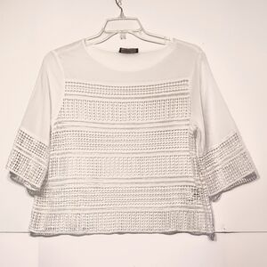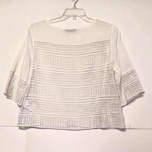 Banana Republic Eyelet Boho Chic White Blouse Lg Lined 3/4 Sleeve Versatile