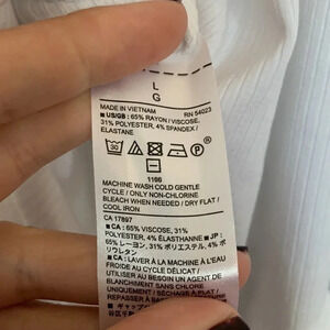 New with tags: Banana Republic Factory ribbed white bodysuit. This 3/4 sleeve, ribbed bodysuit has a deep U-neckline.