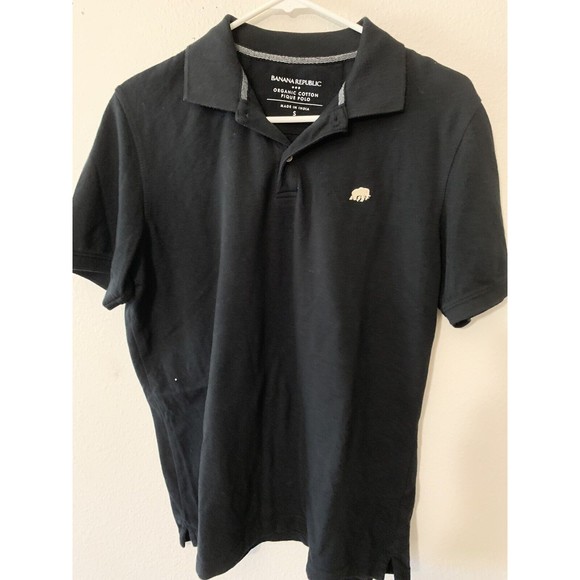 Banana Republic Factory Black Organic Cotton Slim Fit Pique Polo Size S