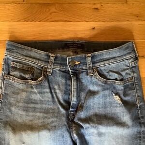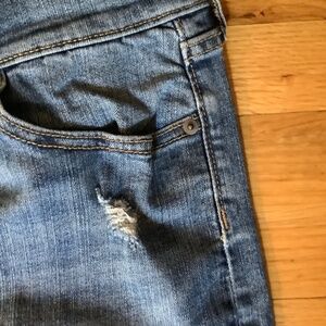 This jeans are in great used condition. Thea are distressed but no other tears or stains. Inseam 28 in, waist 29 in, hips 36 in. Come from smoke free pet free home.