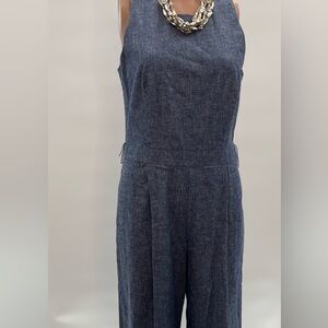 Banana Republic Factory Blue Linen Blend Chambray Wide Leg Cropped Jumpsuit Sz4