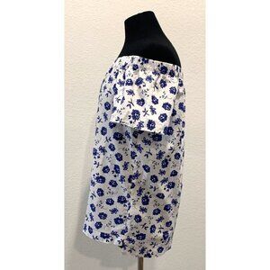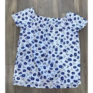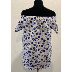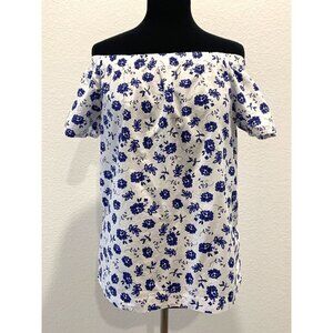 Banana Republic Factory Blue and White Floral Off the Shoulder Top Size XS