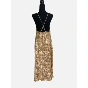 Banana Republic Factory Dress Women's Large Beige Animal Print Cross Back Slip