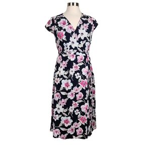 Banana Republic Factory Floral Midi V-Neck Adjustable True Wrap Dress Size 4