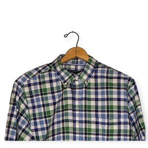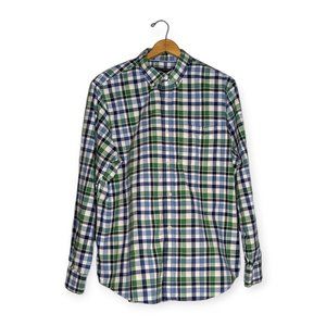 Banana Republic Factory Green/Blue Plaid Long Sleeve Button Down Shirt Size XL