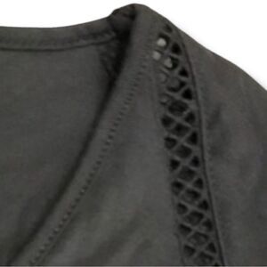 Featuring a deep V-neck and delicate cutout mesh details at the shoulders and wrists, this long sleeve tee adds a touch of elegance and femininity to any outfit. The versatile gray color complements a variety of styles, making it a must-have for your closet.