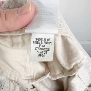 Banana Republic Factory Linen Blend Wide Leg Pleated Trouser Pant Flax Size 12. Very good, preowned condition. Pants do not come with belt. 54% Linen, 45% Cotton, 1% Spandex/Elastane. Machine wash. Tumble dry low. Pleated waist. Wide leg. Side slit pockets. Back flap pockets. High waist High rise.