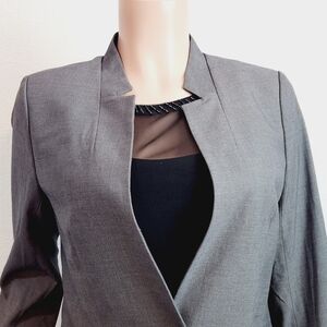 Introducing the Banana Republic Factory's Gray Textured Knit Inverted Collar Blazer.