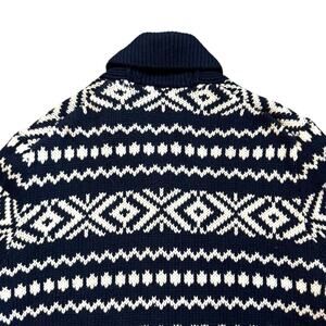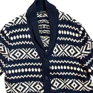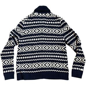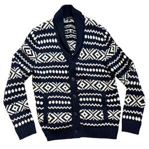 Banana Republic Factory Men's Fair Isle Navy Shawl Collar Cardigan Sweater - L