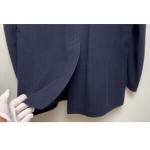 Gently pre-loved Banana Republic Factory Men's Wool Blend Navy Peacoat, Large, in Good Condition. Light signs of wear include light markings in the wool at back upper shoulders/neckline. Details: pockets, double breasted, quilted lining. Measurements taken by hand when flat are approximately: