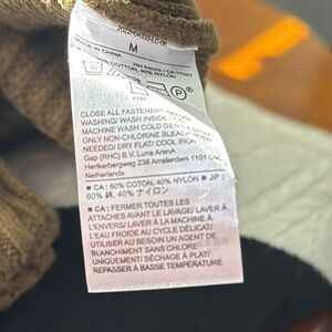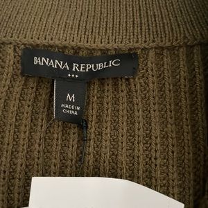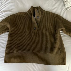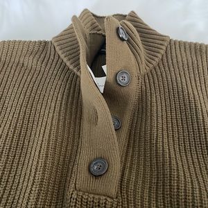 Ribbed crew neck sweater. Button detail on collar. Soft and cozy fabric. Washed but not worn. Mostly cotton.