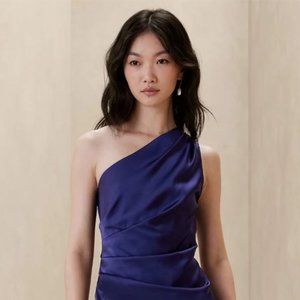Banana Republic Factory One-Shoulder Satin Knee-Length Dress Blue Sz 16 & 18