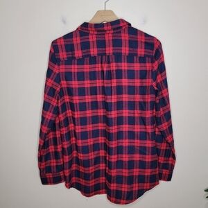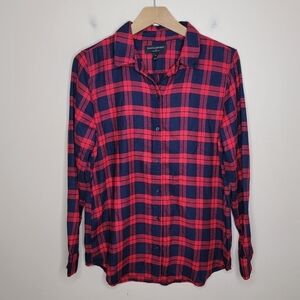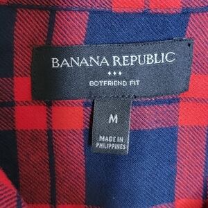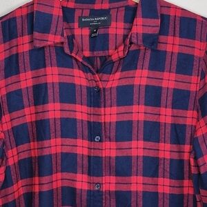Banana Republic Factory | Red Navy Plaid Button Front Boyfriend Fit Shirt Medium