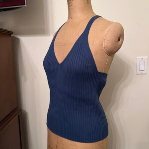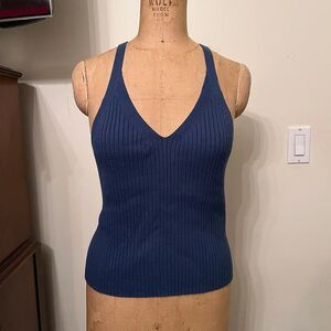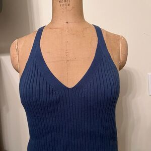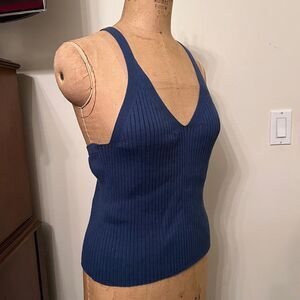 Banana Republic Factory Ribbed Cross Racerback V-Neck Tank Top Cami in Blue