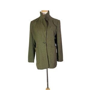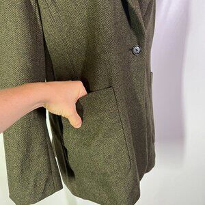 Banana Republic Factory Size 8 Herringbone Long Blazer Green Tweed Wool Blend